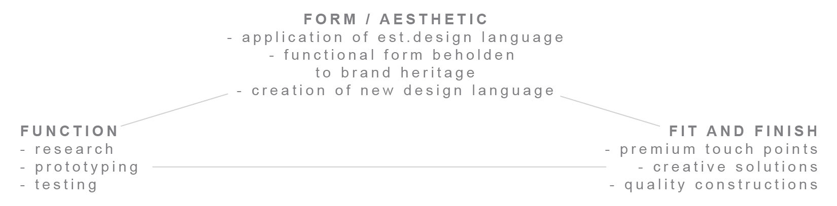 In the spirit of function driven design and purpose built product we focus on user needs to initiate our process. The chart below is our guide to focus efforts and optimize client needs and feedback.
