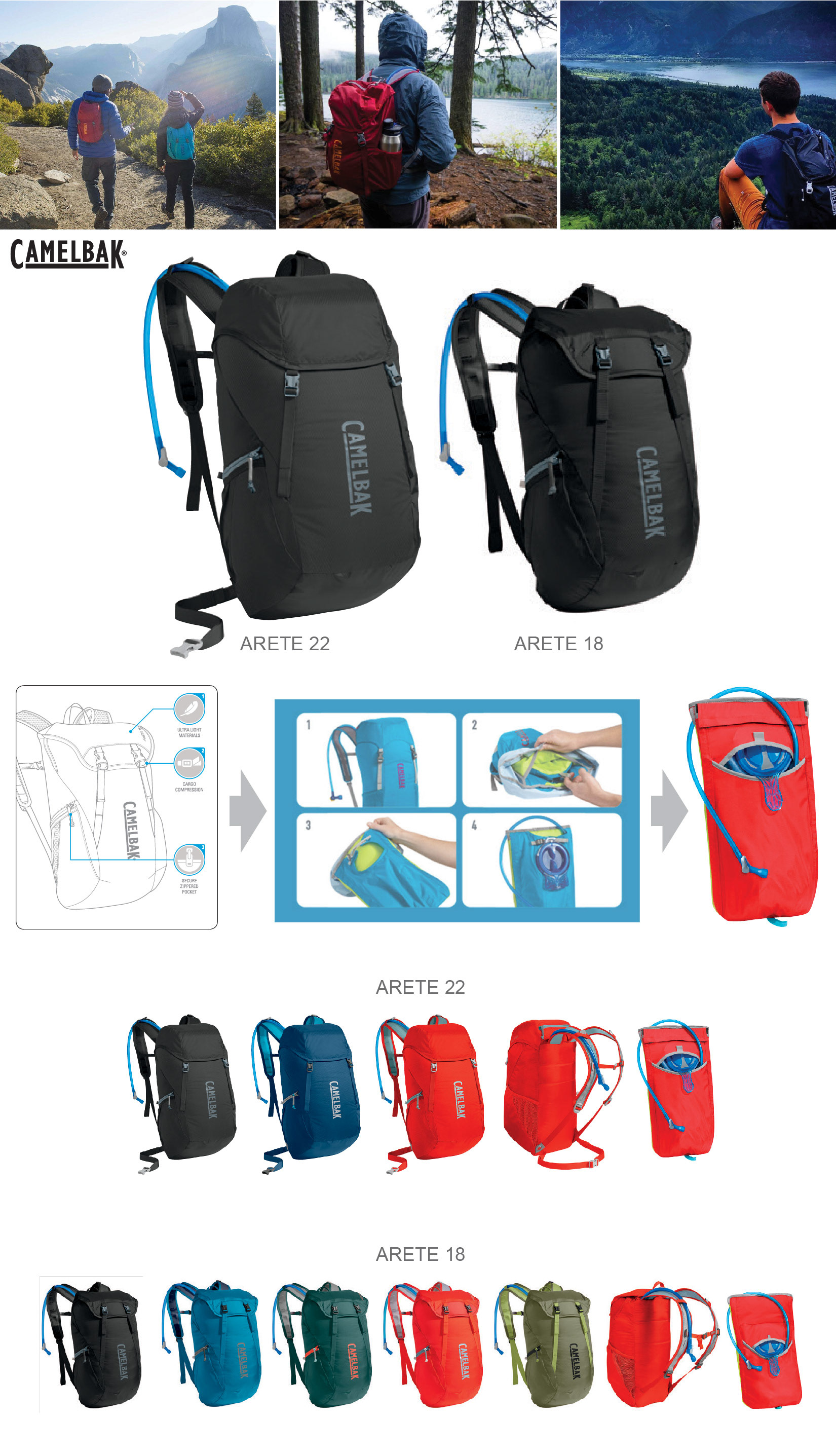 ARETE SERIES - OUTDOOR DAY PACK THAT CONVERTS TO HYDRATION SLEEVE FOR TRANSPORT IN LARGER PACK